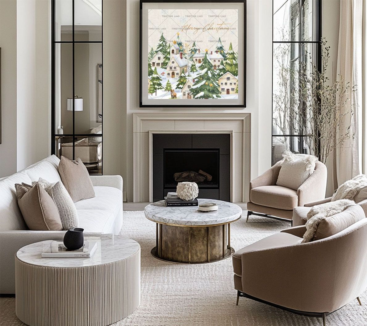 Christmas,Christmas Tree,Snowflake,House,Watercolor