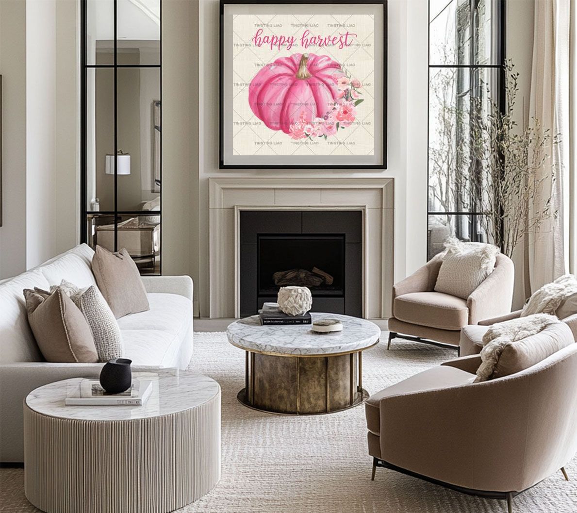 Autumn,Thanksgiving,Pumpkin,Flowers,Watercolor,Cotton