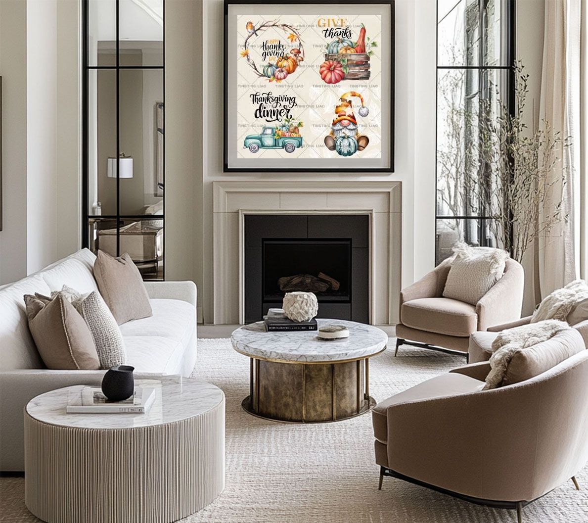 Autumn,Thanksgiving,Puma,Pumpkin,Maple Leaf,Watercolor,Art,Decoration