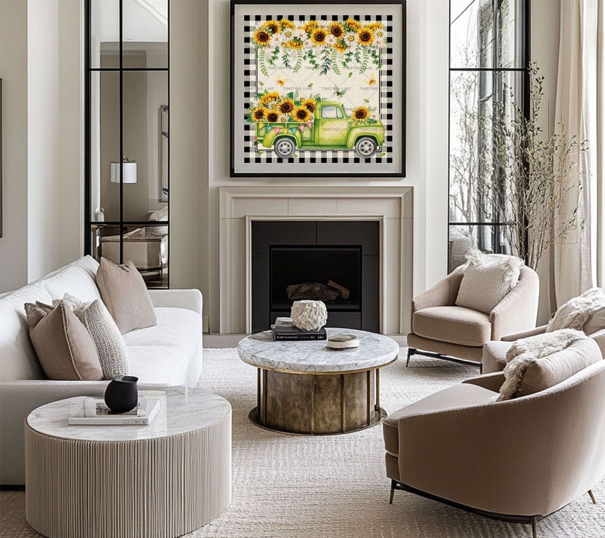 Spring,Trucks,Sunflowers,Daisy,Butterflies,Watercolor,Jam
