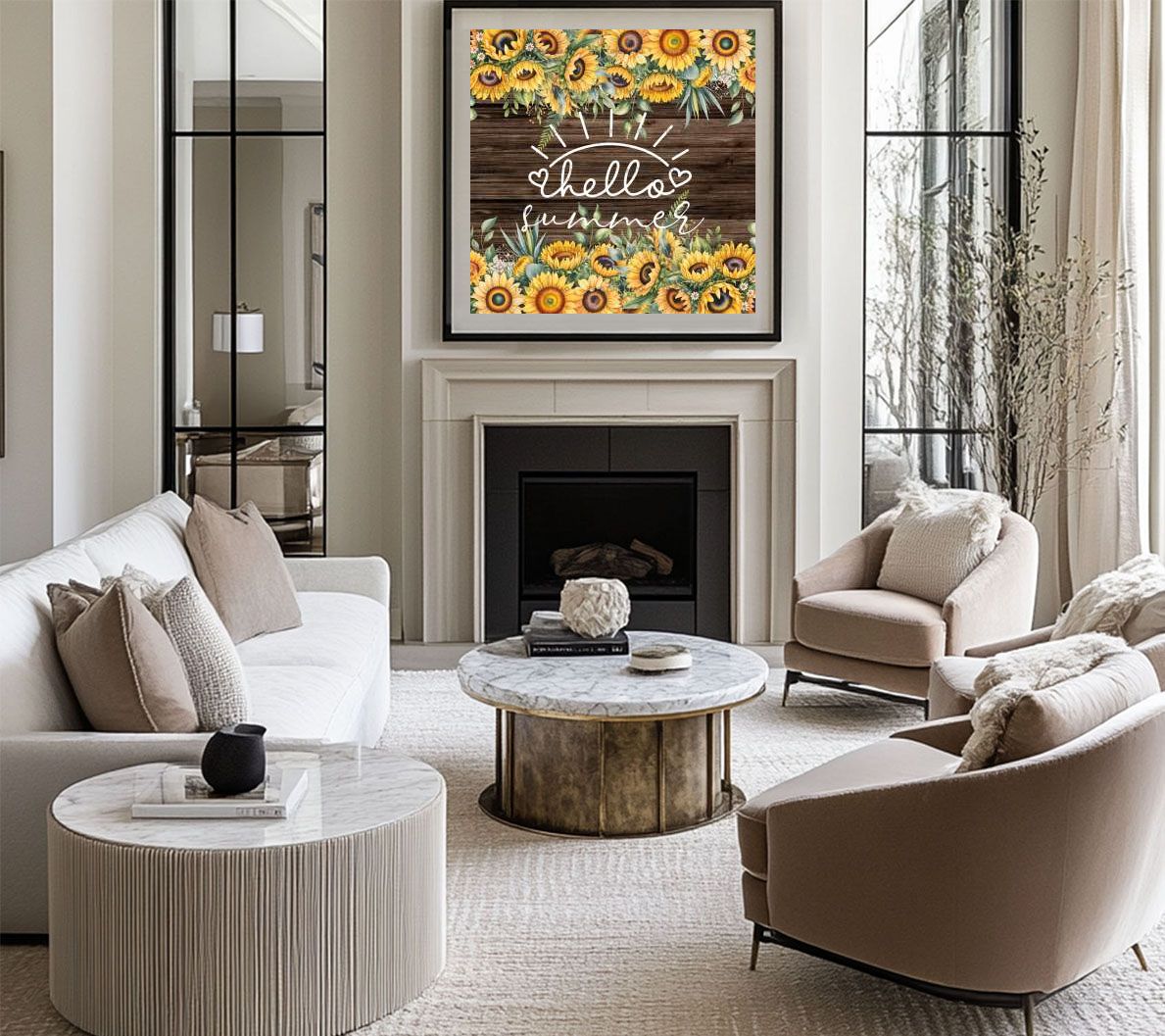 Summer,Flowers,Sunflowers,Watercolor Style,Retro,Wooden Stripes,Hello Summer
