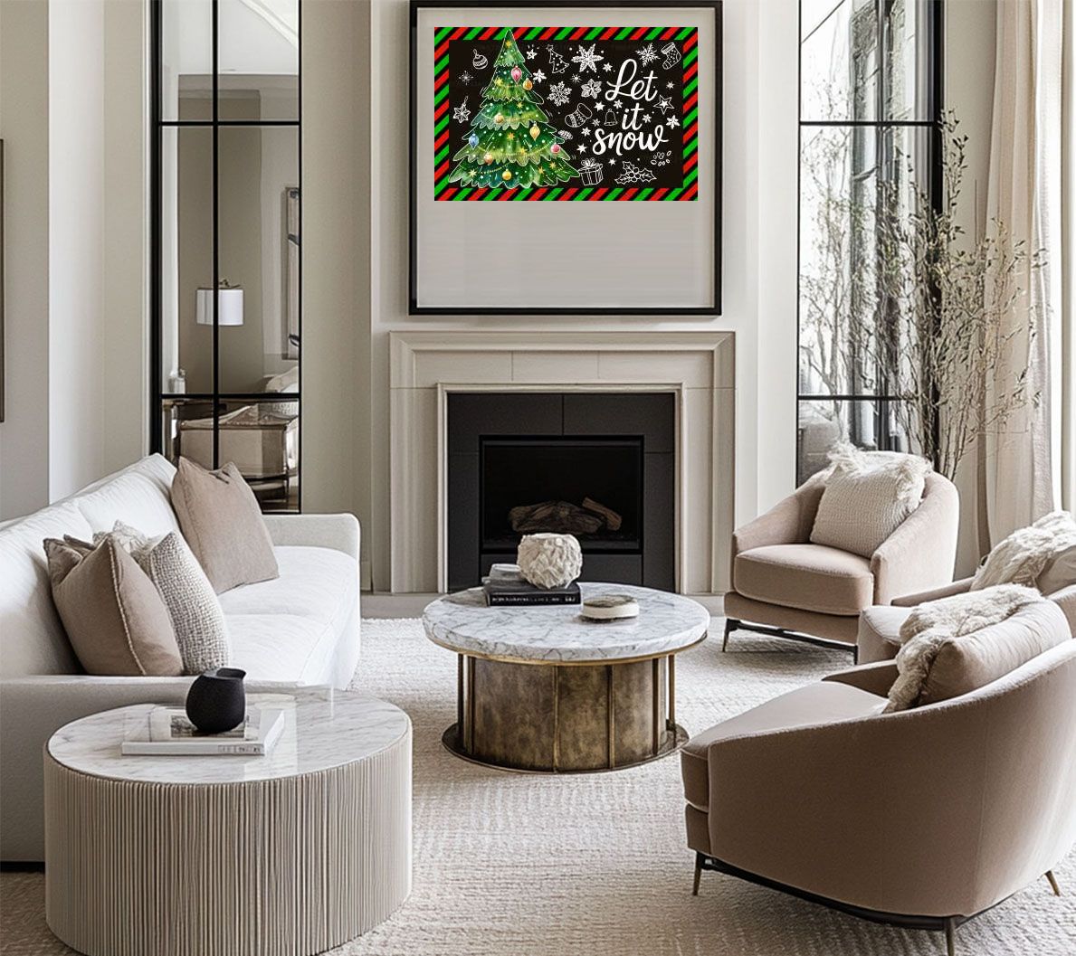 Winter,Christmas Tree,Santa Claus,Snowflakes,Watercolor Style,Let It Snow,Merry Christmas