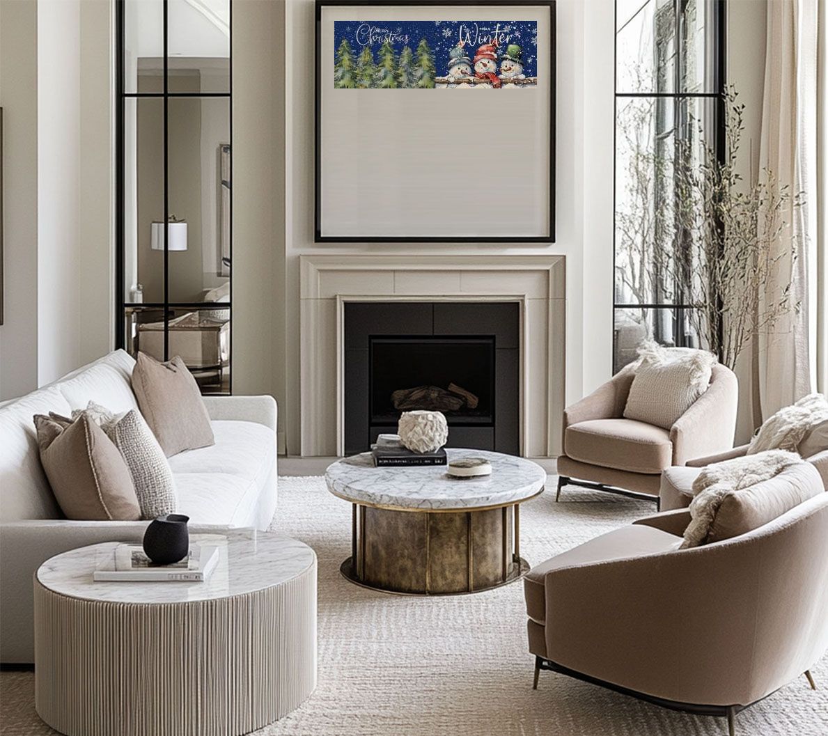 Winter,Christmas,Watercolor Style,Snowman,Snowflakes,Hello Winter,Mercry Christmas