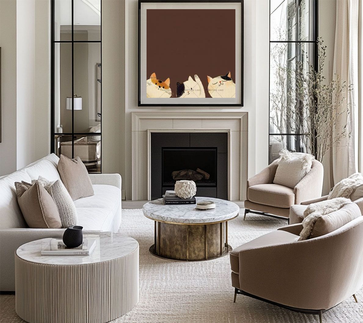 Japanese,And Wind,Daisies,Cats,Munches,Brown Background