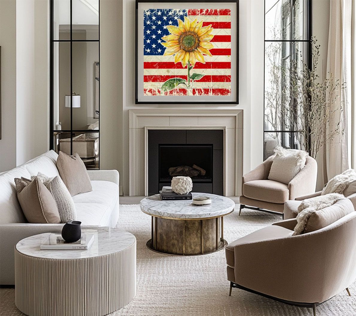 U.S. Flag,Sunflowers,Made Old,American Country Style,Red