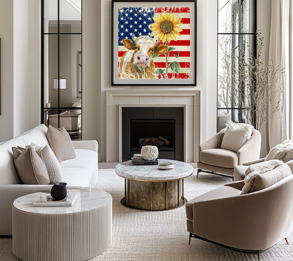 U.S. Flag,Sunflowers,Made Old,Cows,Farms,American Country Style,Red