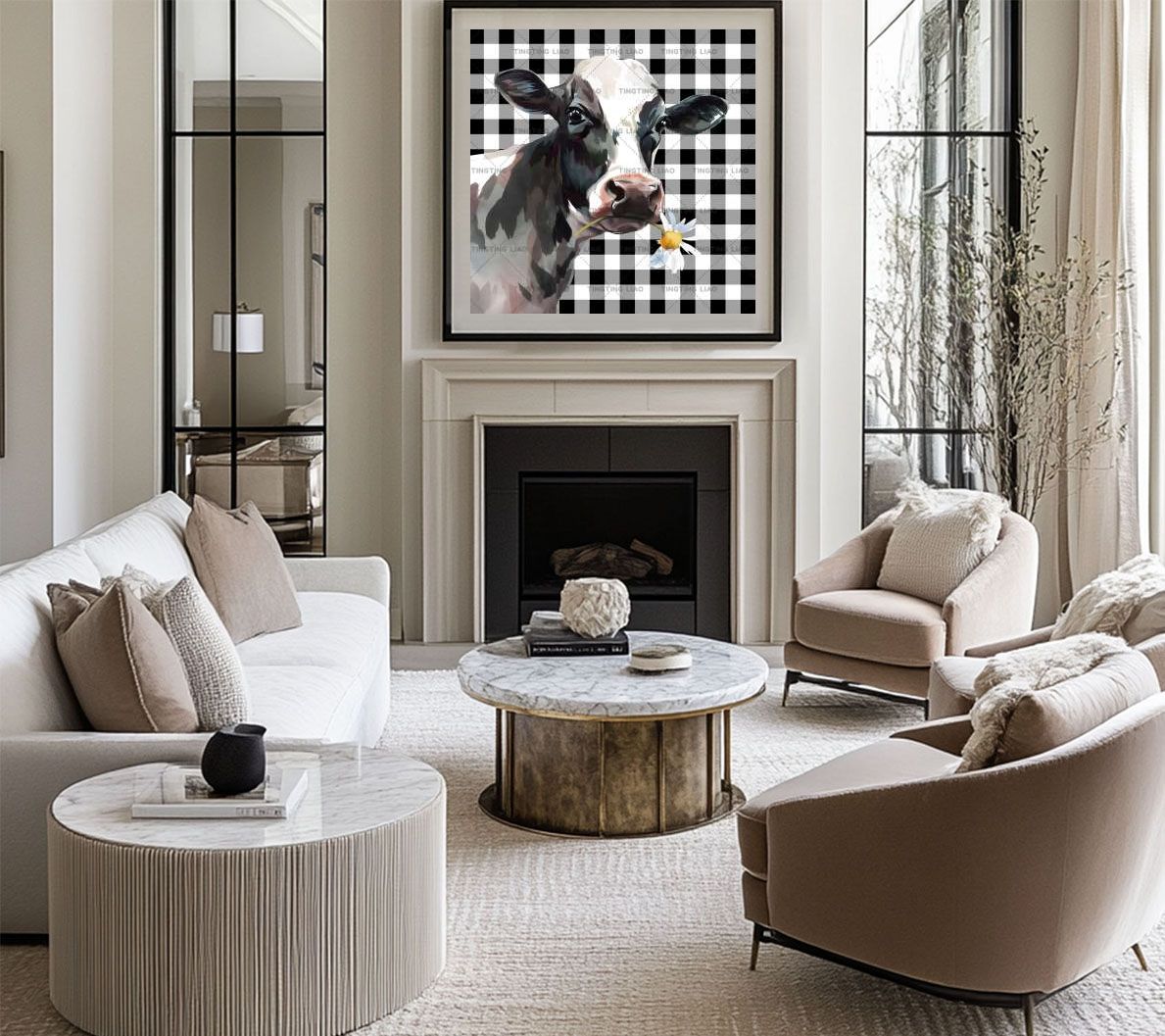 U.S. Country Style,Farm,Black-and-white Stripe,Cow,Black