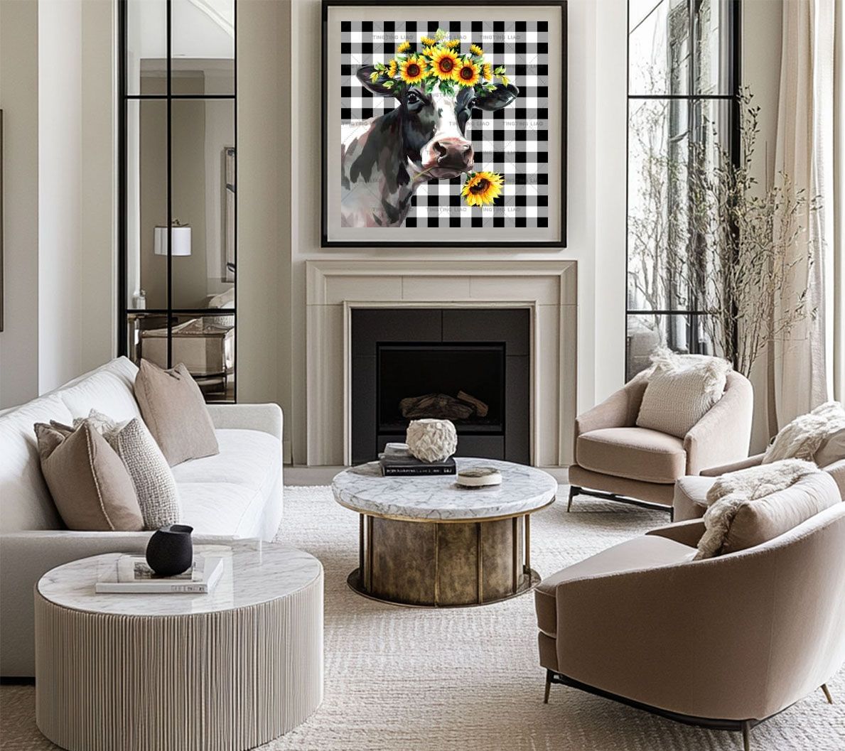 U.S. Country Style,Farm,Black-and-white Stripes,Cows,Sunflowers,Black