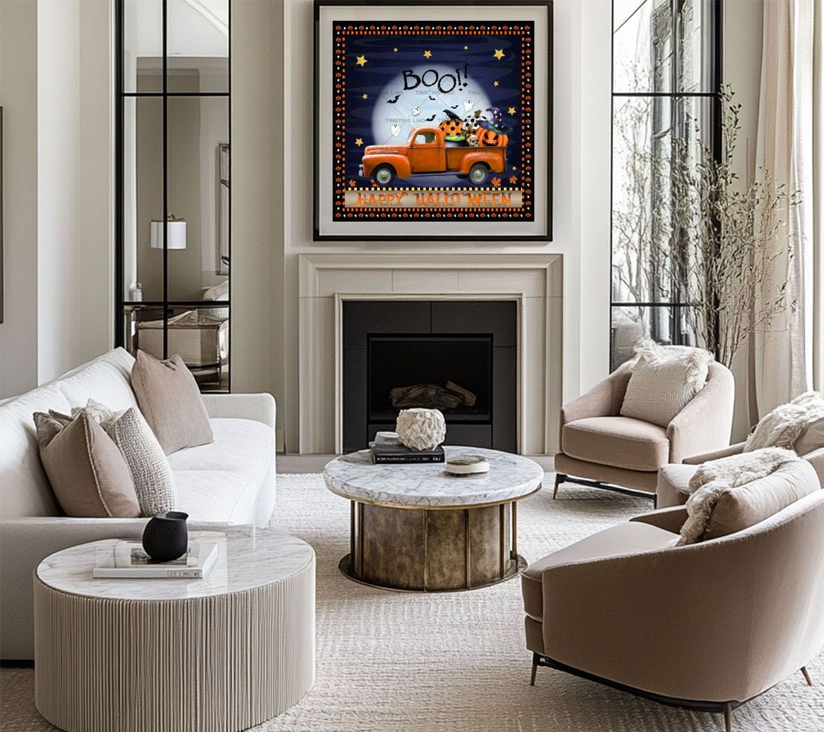 Halloween,Happy,Halloween,Halloween Orange Trucks,Pumpkins,Crows,Ghosts,Borderlines