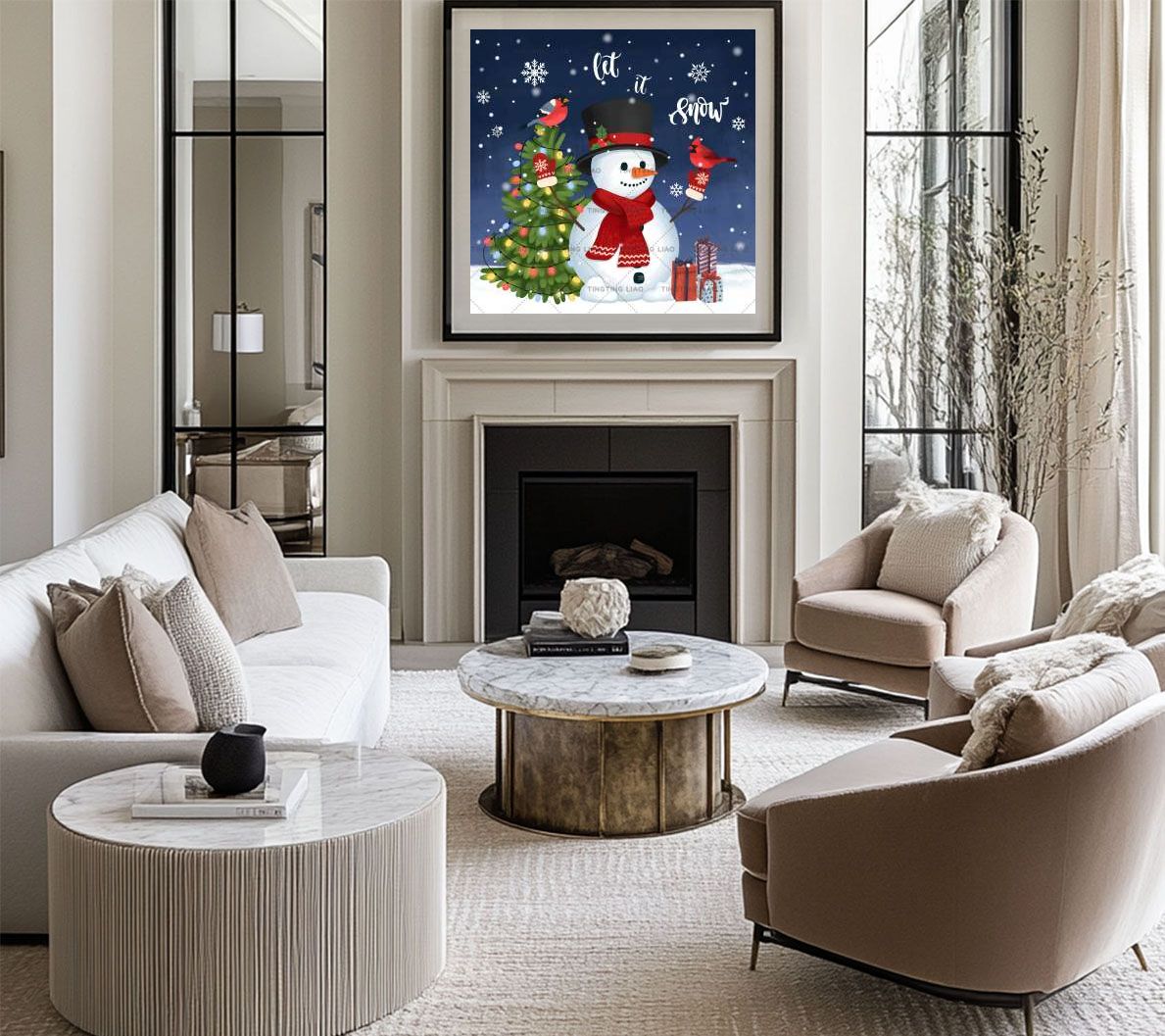 Christmas,Snowman,Christmas Tree,LET,IT,SNOW,Snowflakes,Gradient,Deep Blue
