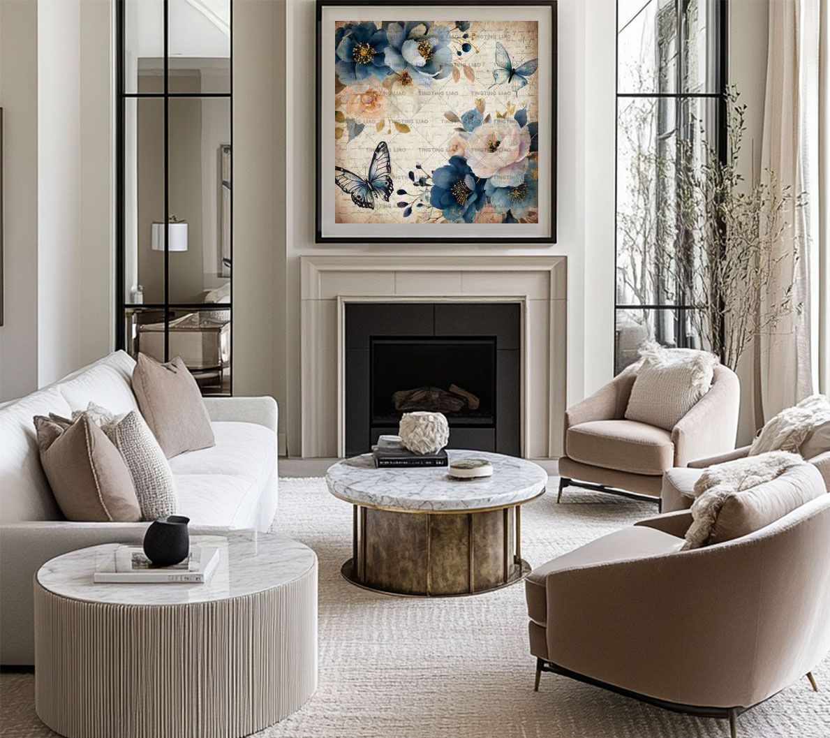 Spring,Flowers,Watercolors,Fields,Butterflies,Vintage Paper