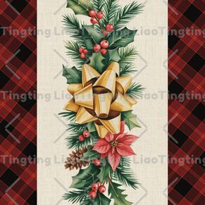Christmas,Winter,Holly Leaf,Ribbon,Berry,Plaid,Poinsettia