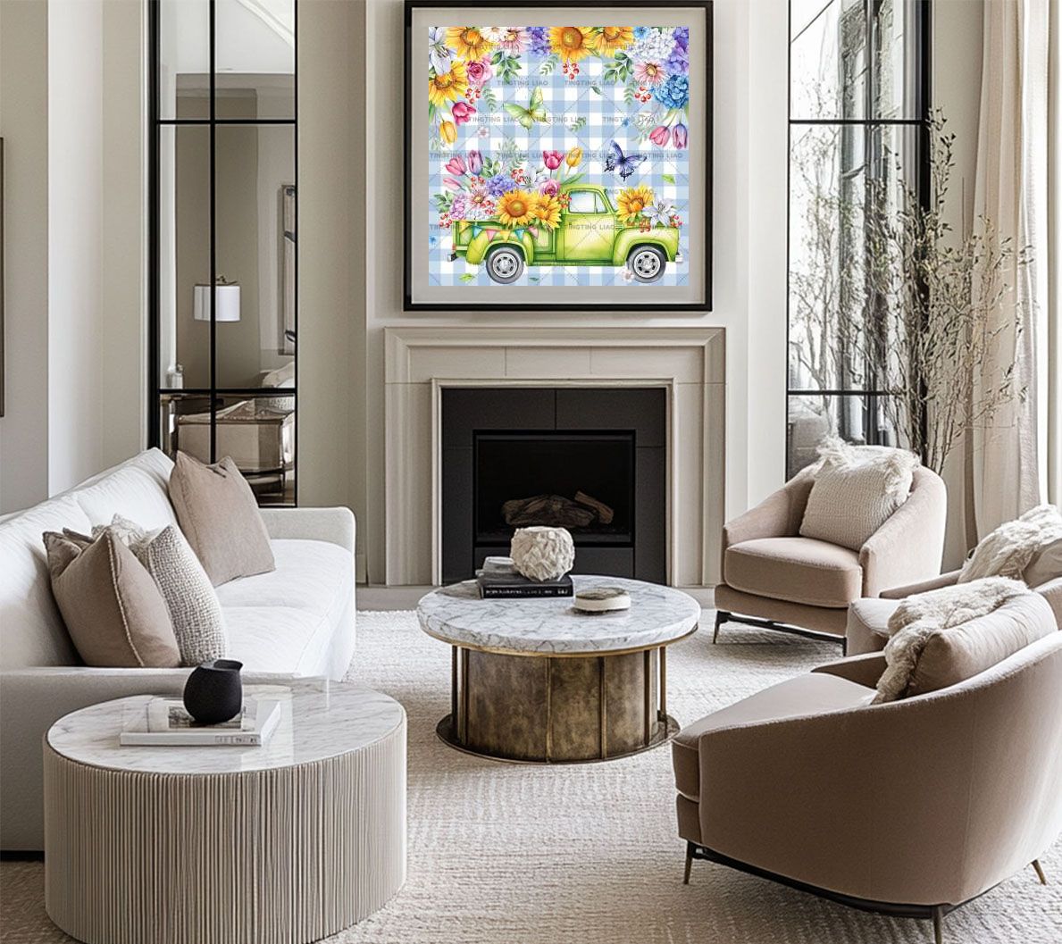 Spring,Flowers,Trucks,Butterflies,Sunflowers,Daisy,Embroidered Balls,Tulips,Lilies,Berries,Pale Bluegrass.