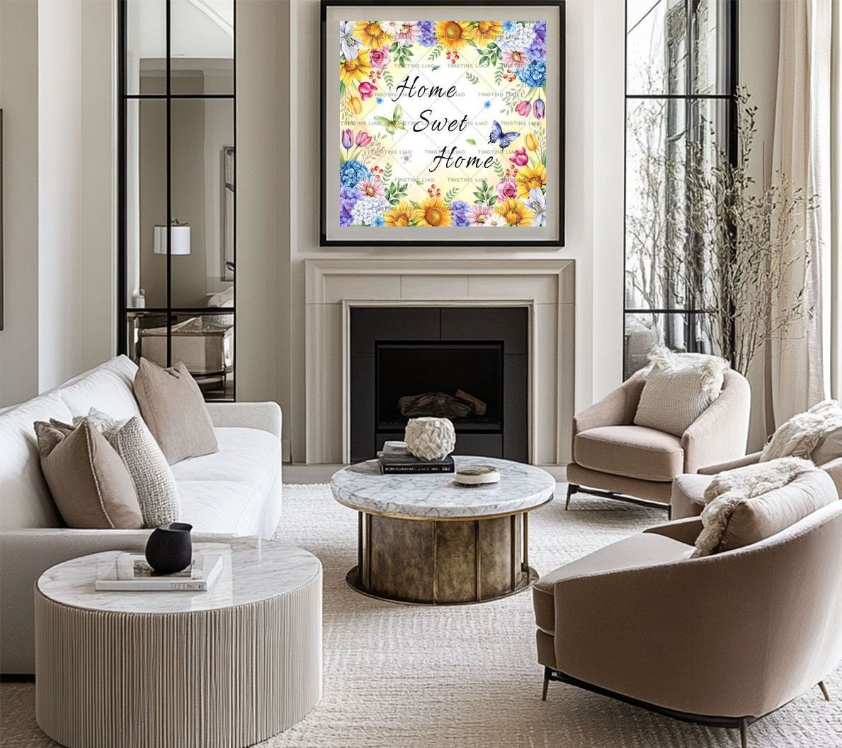 Spring,Flowers,Text,Butterflies,Sunflowers,Daisy,Embroidered Balls,Tulips,Lilies,Berries