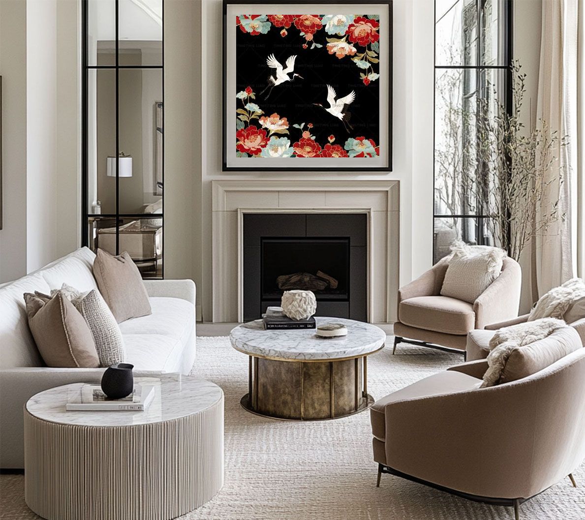 Japanese,And Winds,Dynasties,Cranes,Peony,Black