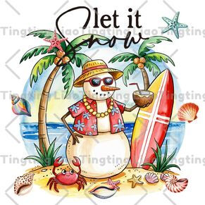 Christmas,Snowman,Ocean,Beach,Coconut Tree,Shell,Starfish,Watercolor Style