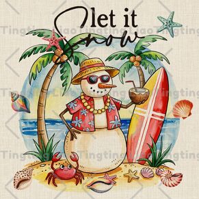 Christmas,Snowman,Ocean,Beach,Coconut Tree,Shell,Starfish,Watercolor Style