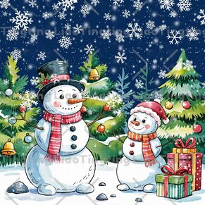 Winter,Christmas,Snowflake,Watercolor Style,Pine,Snowman