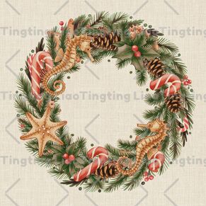 Winter,Christmas,Watercolor Style,Pine Branch,Pine Cone,Starfish,Seahorse