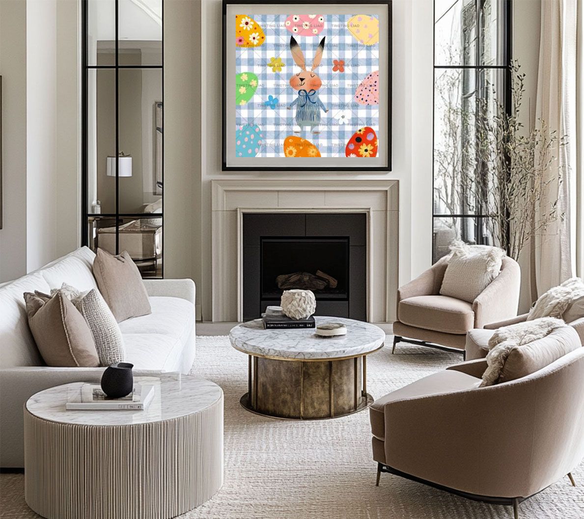 Spring,Easter,Eggs,Rabbit Little Flower Series,Blue Stripes