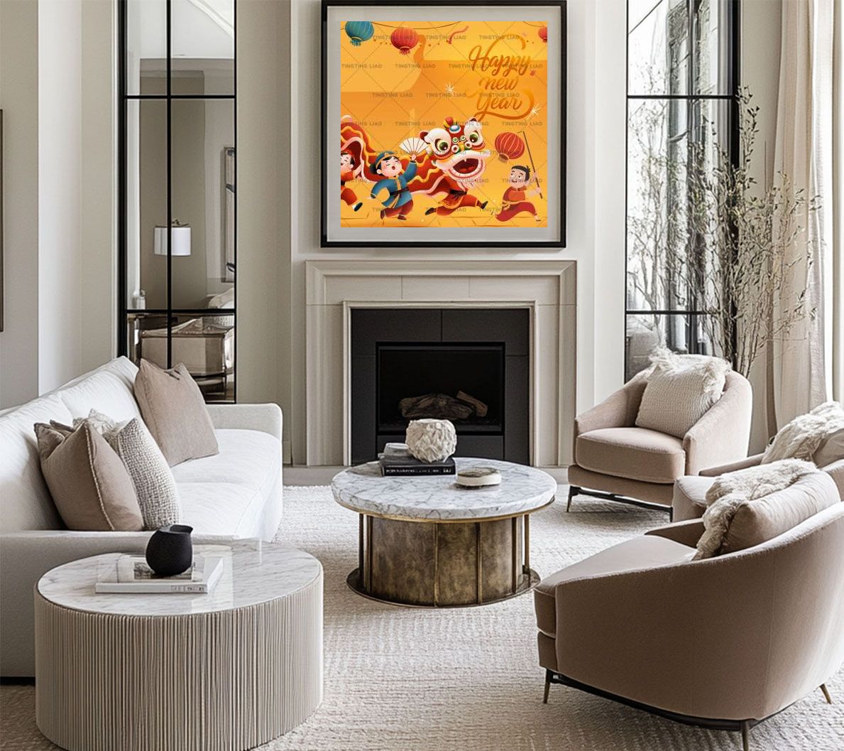 Spring Festival,Happy New Year,Annual Paintings,Dance Lions,Chinese Wind