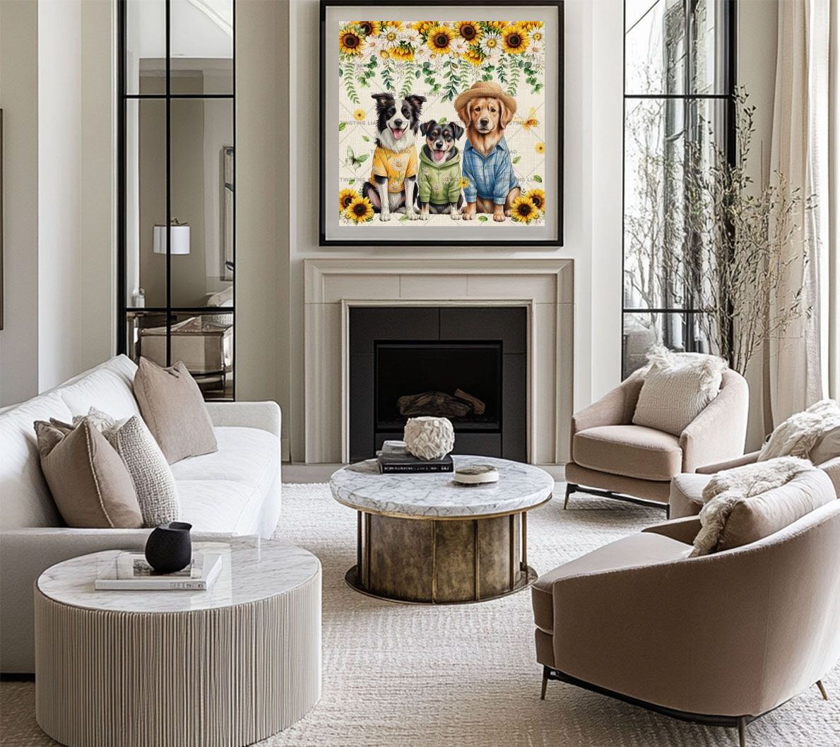 Spring,Dogs,Sunflowers,Daisy,Leaves,Watercolor,Fields,Jam
