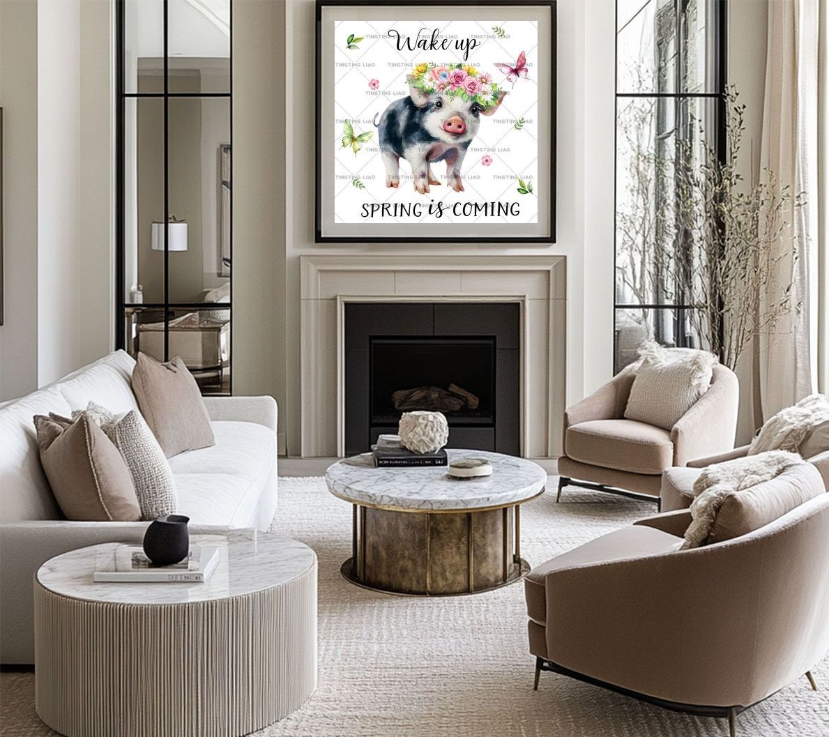 Spring,Pigs,Roses,Daisy,Butterflies,Leaves,Text,Watercolor