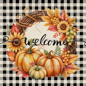 Autumn,Thanksgiving,Pumpkin,Leaves,Watercolor,Hand-painted,Sunflower,Plaid