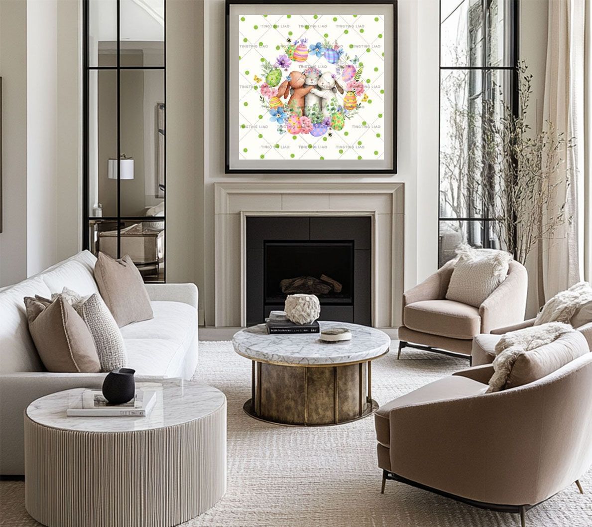 Spring,Easter,Eggs,Flowers,Three Rabbits Series,Green Wave Point