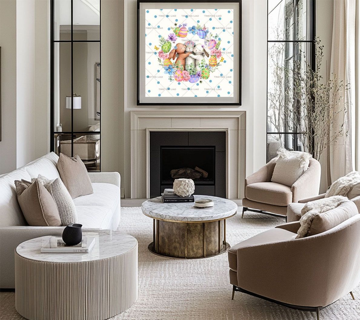Spring,Easter,Flowers,Three Rabbit Series,Blue Wave Point