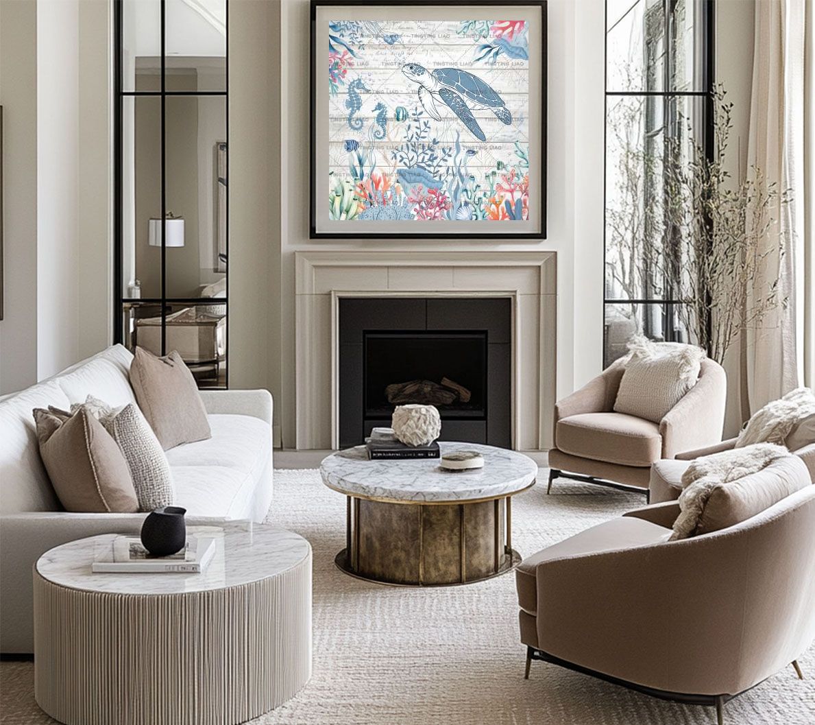Marine Creatures,Sea Turtles,Corals,Watercolors,Small Fish,Retro