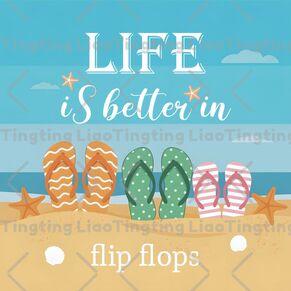 Ocean,Slippers,Beach,Starfish,Shell,Vintage Life,Is,Better,In,Flip,Flops