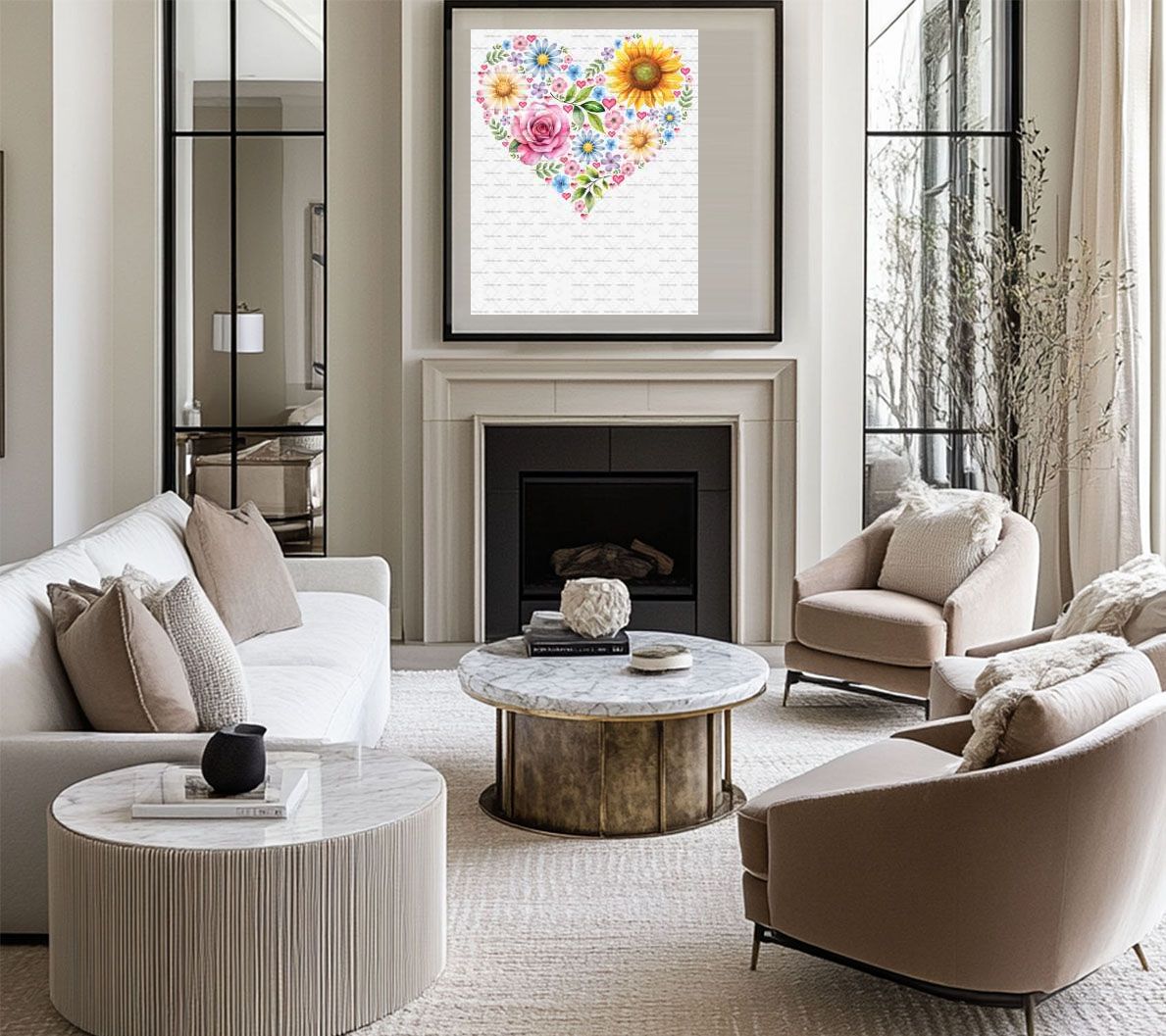 Valentine's Day,Love,Roses,Daisy,Sunflowers,Watercolor