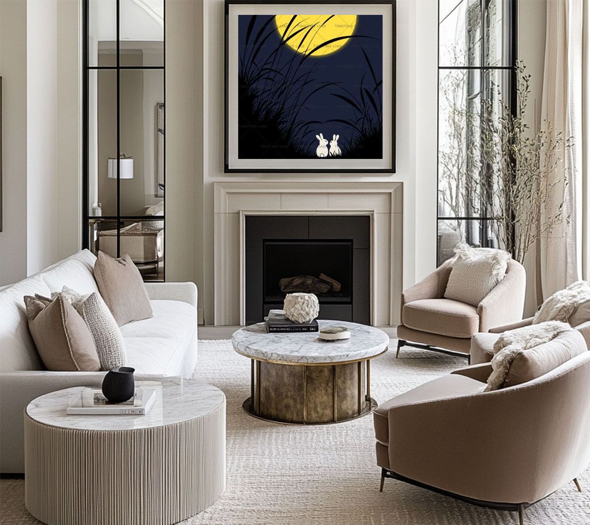 Japanese,And Wind,Daisies,Rabbit Series,Moon,Deep Blue