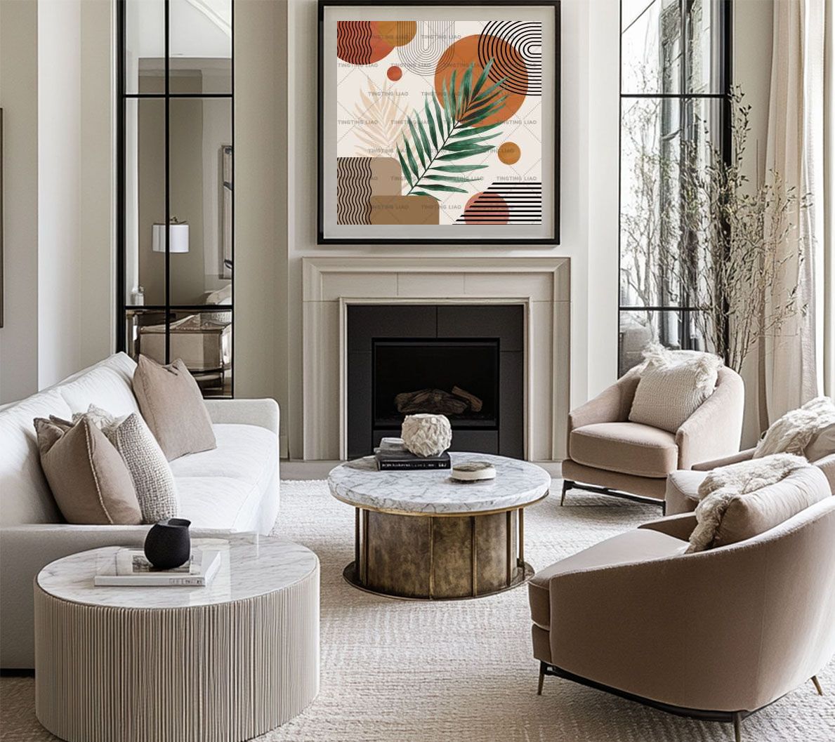 Abstraction,Bosemia,Round,Leaves,Orange,Rice Color,Stripes
