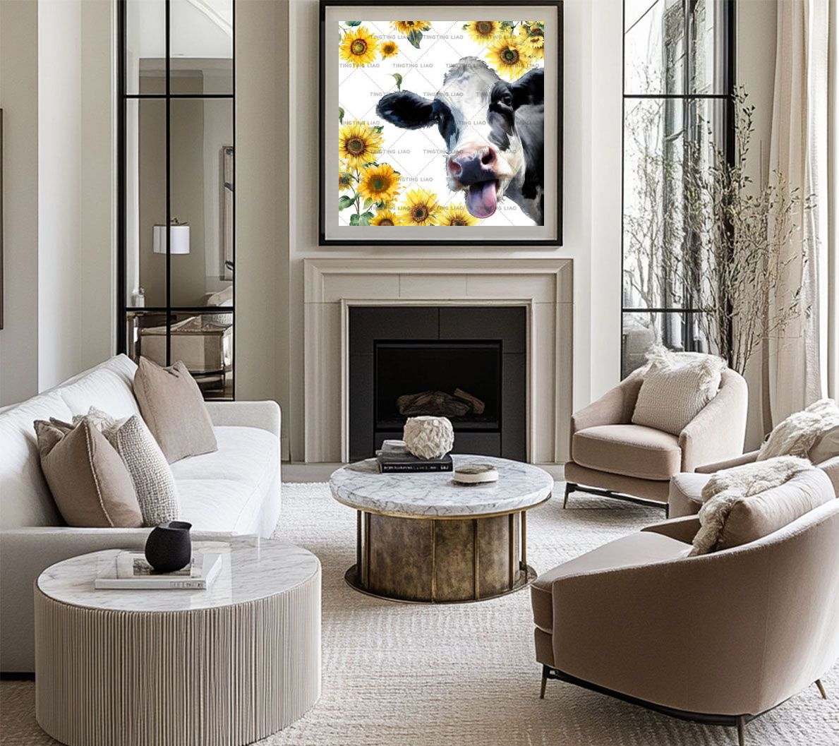 American Country Style,Sunflowers,Cows,Sunflowers