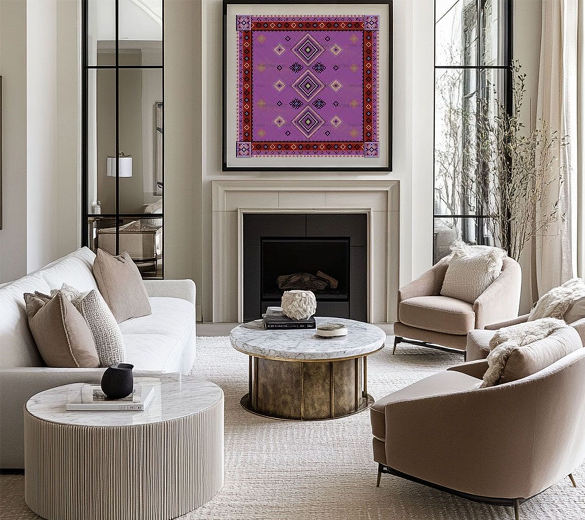 Sadu Weaving Pattern Series,Boundaries,Squares,Purple Background