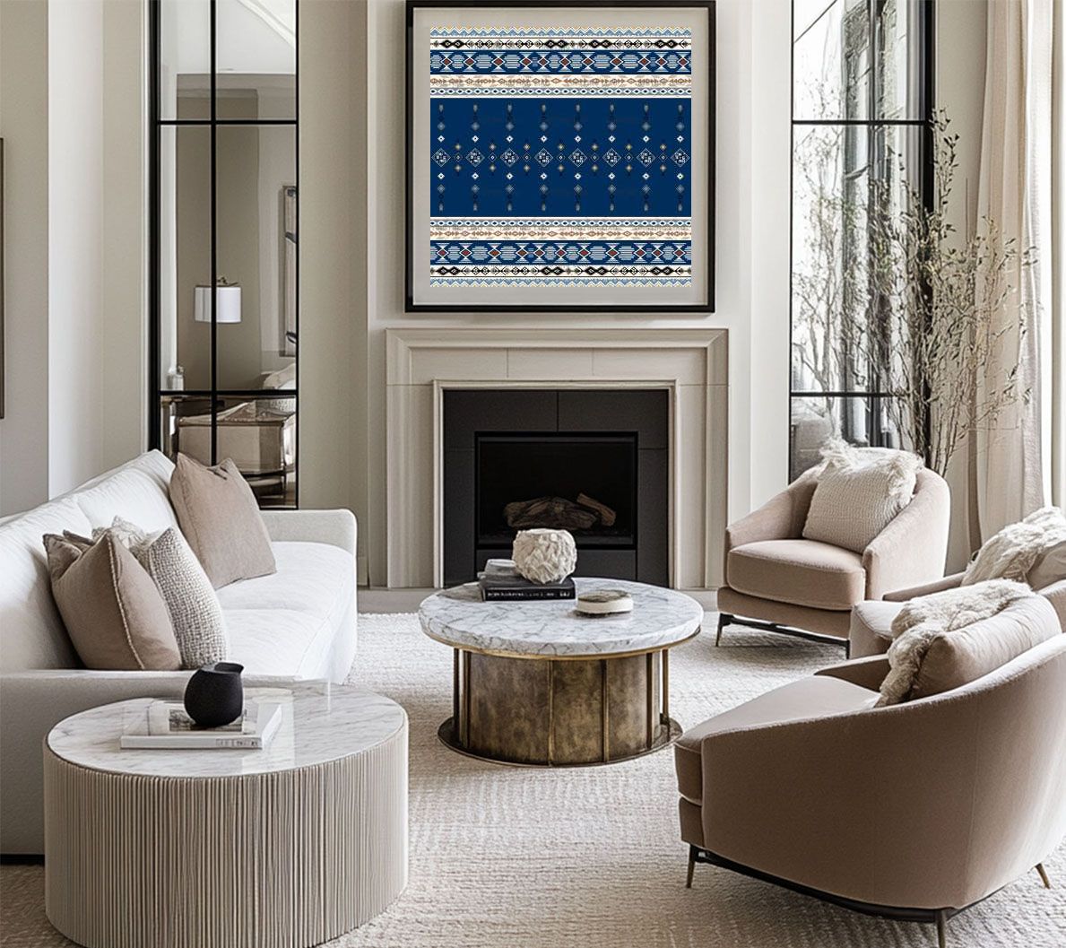 Sadu Weaving Patterns Series,Repeat,Double-Continuous,Blue Background