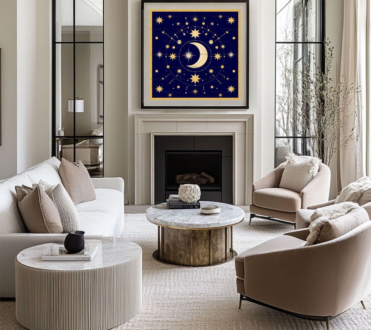 Stars,Moons,Gorgeous,Art,Deep Blue