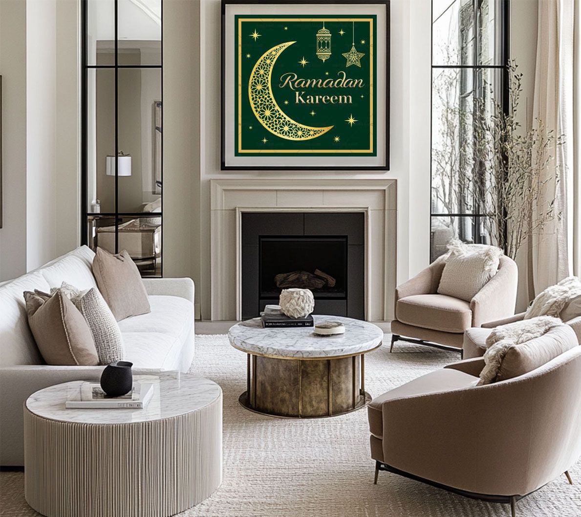 Ramadan,Moon,Stars,Lights,Text,Gorgeous,Deep Green