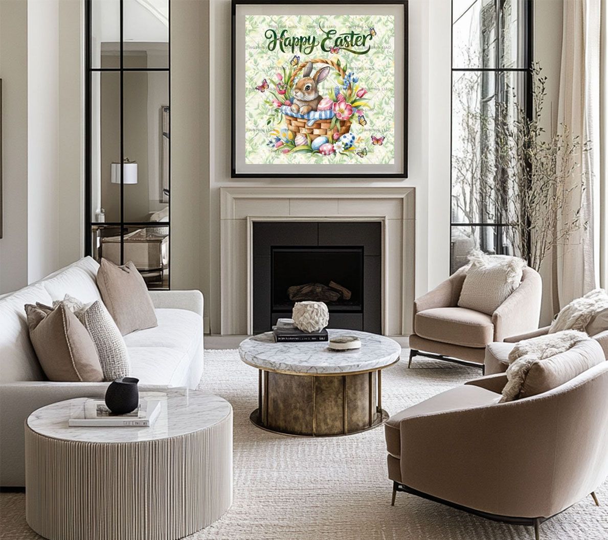 Easter,Flowers,Rabbits,Tulips,Watercolors,Handdrawn Spring