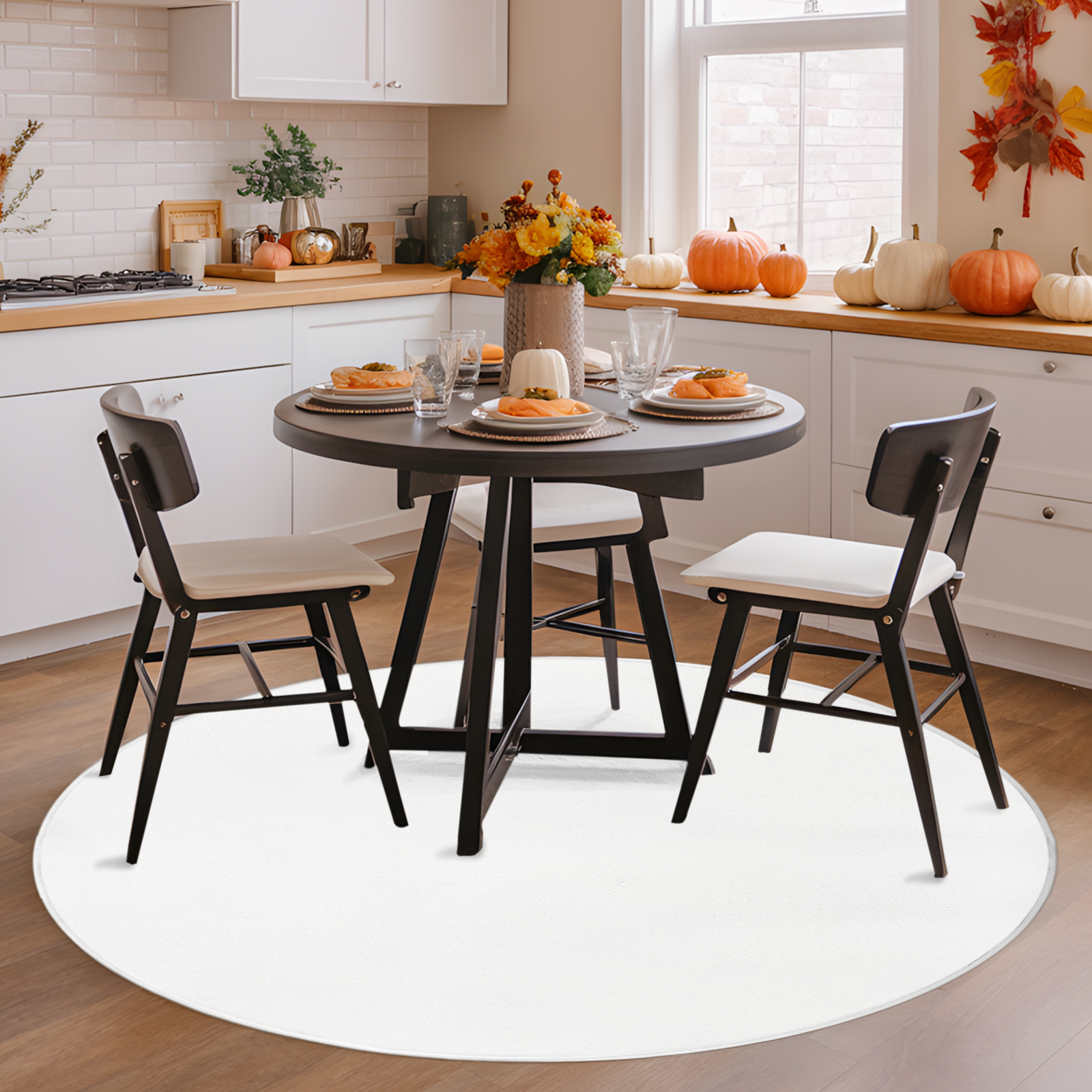 White windows and white window treatment valances, with Christmas snow scene outside the window