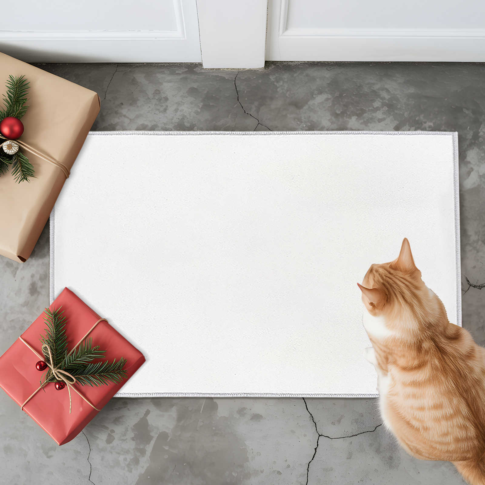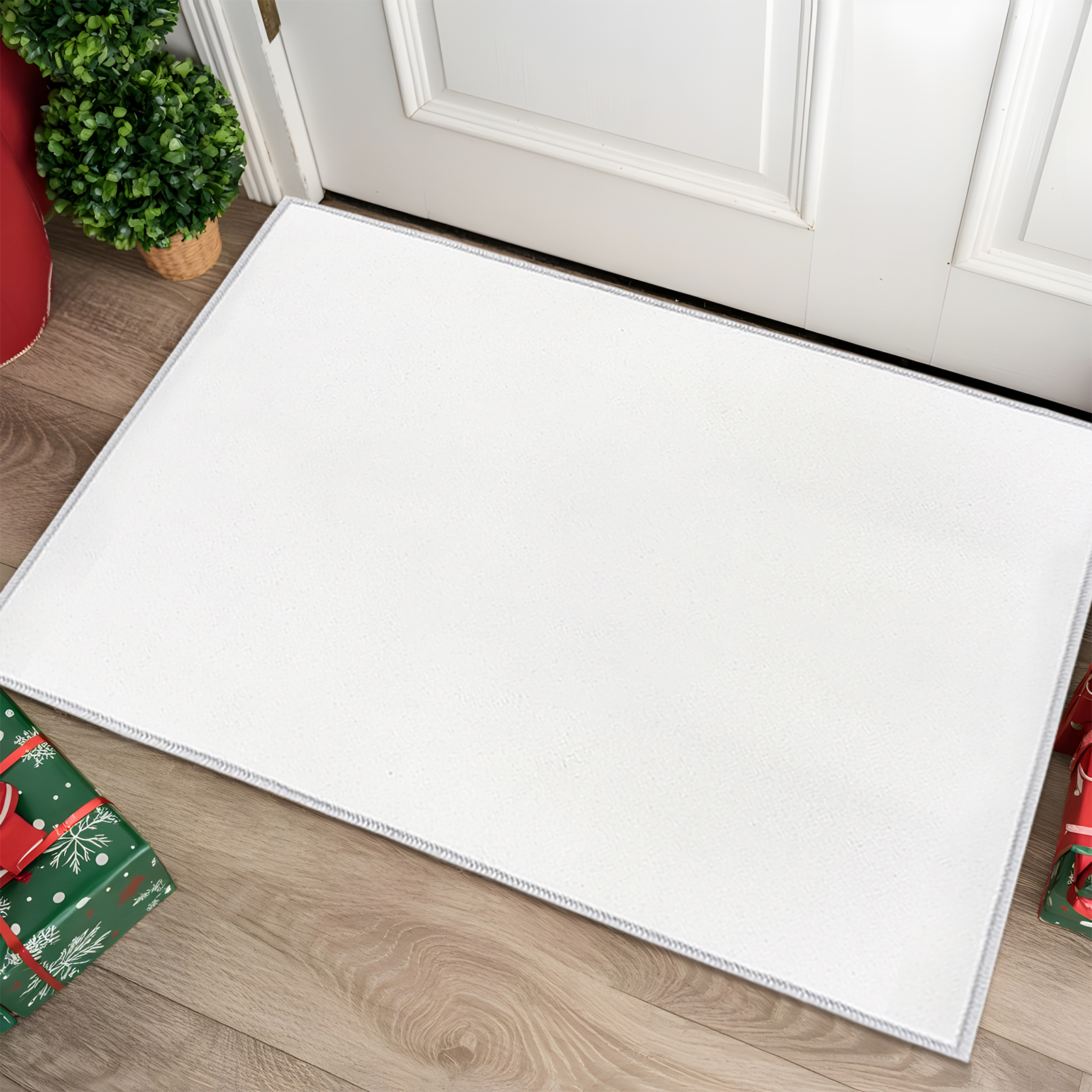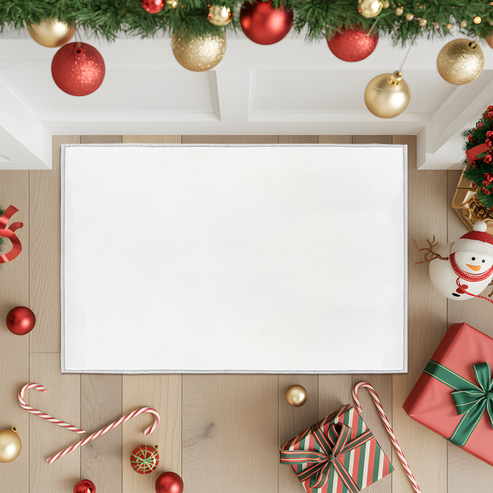 White windows and white window treatment valances, with Christmas snow scene outside the window