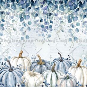 Thanksgiving,Autumn,Eucalyptus Leaves,Blue Pumpkin,White Pumpkin,Blue Background