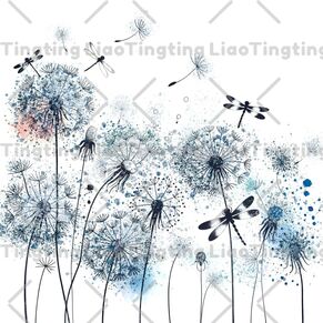 Watercolor,Plant,Modern,Dandelion,Dragonfly