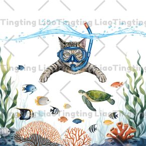 Watercolor Style,Animal,Marine Life,Cat,Turtle
