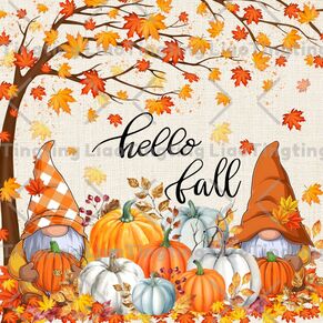 Autumn,Thanksgiving,Maple Leaf,Branch,Gnome,Pumpkin,Farm,Farmhouse,Country,Vintage Linen Sole