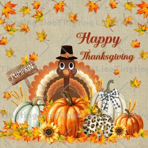 Happy,Thanksgiving,Autumn,Turkey,Maple Leaf,Pumpkin,Sunflower,Harvest,Harvest,Barley,Farm,Vintage,Brown Linen Bottom