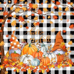 Autumn,Thanksgiving,Maple Leaf,Branch,Gnome,Pumpkin,Farm,Farmhouse,Country,Vintage,Black And White Plaid