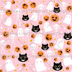 Halloween,Ghost,Pumpkin,Candy,Black Cat,Skull,Retro,Pink Background